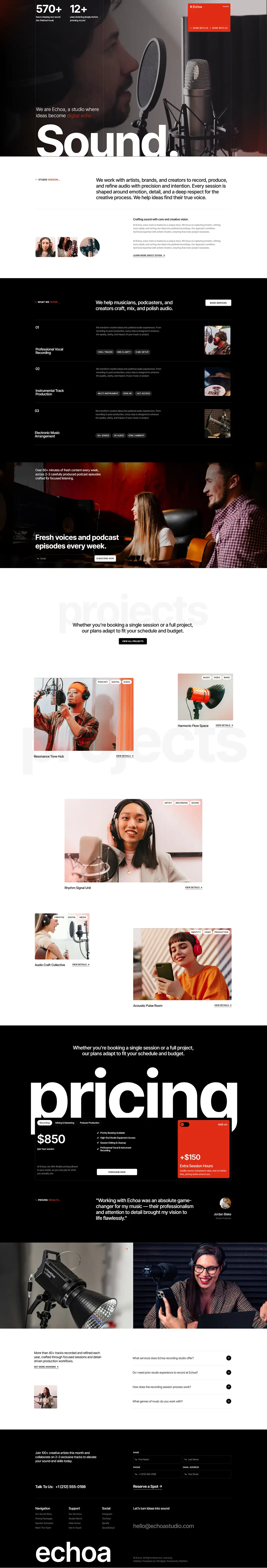 Echoa is built for audio and media-focused businesses, including recording studios, podcast creators, and sound production services. With a strong emphasis on creative presentation, CMS collections, and performance-optimized layouts, it provides everything needed to build a polished digital presence for the audio industry.