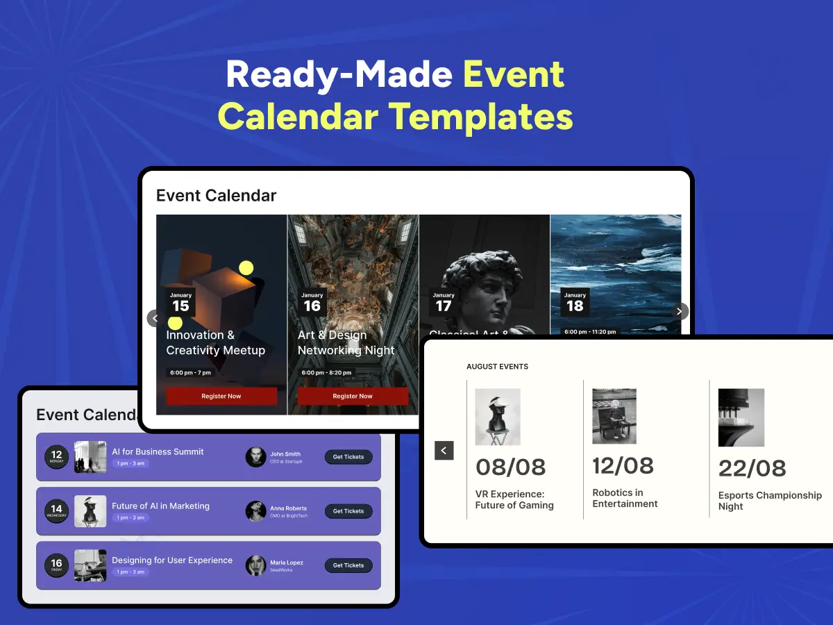 Event Calendar turns your website into a centralized place for showcasing events. Whether you’re planning webinars, launches, or live activities, it helps you present everything in a clear and engaging format.