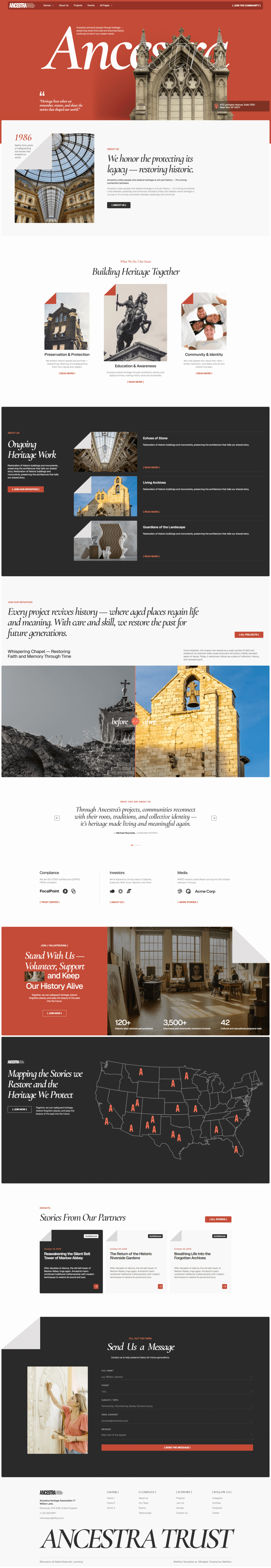Ancestra is a Heritage Association Webflow template for museums, galleries, foundations, and NGOs. Perfect for showcasing history, archives, cultural preservation, exhibitions, community projects, and educational storytelling.