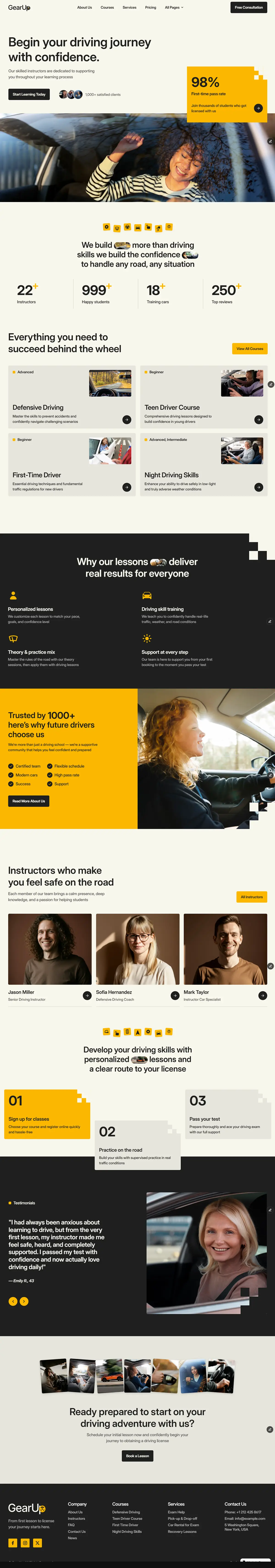 Gearup is a modern template designed for driving schools, instructors, and training centers, offering a clean and professional layout to present courses, services, and team members. It includes a well-structured set of pages and CMS collections for managing courses, instructors, and content like news or pricing, making it easy to showcase offerings and build trust.