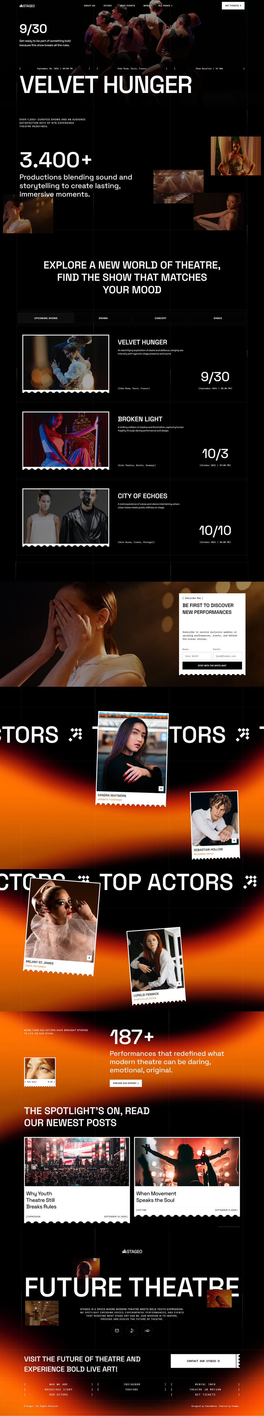 Stageo is a bold Entertainment & Performing Arts Framer Template designed to spotlight creative work. Ideal for theaters, studios, and event producers, it merges dynamic visuals with expressive layouts to present shows, performances, and creative projects with flair.