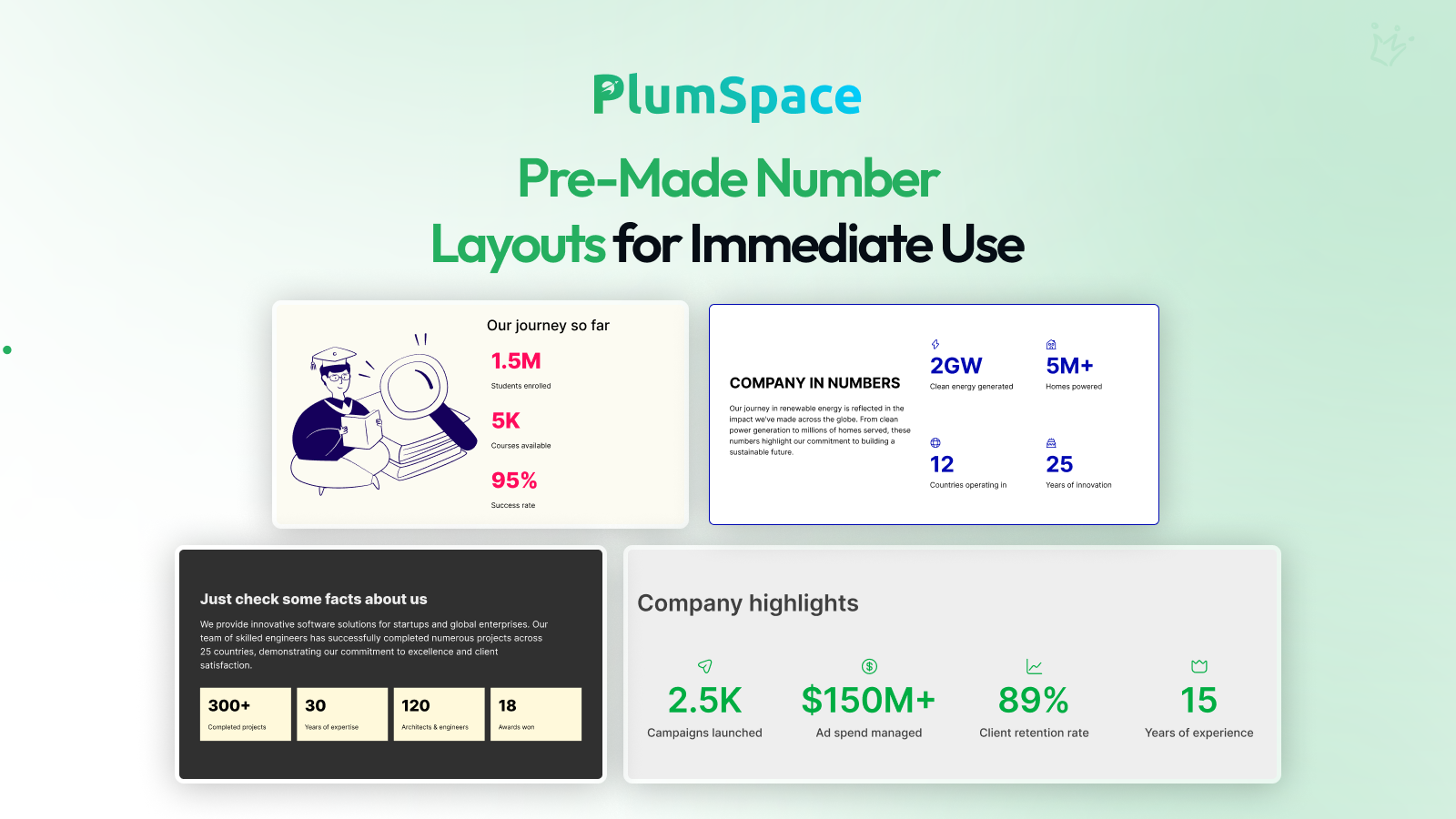 Visually showcase achievements, milestones, and key metrics with animated counters that instantly capture attention and build trust.