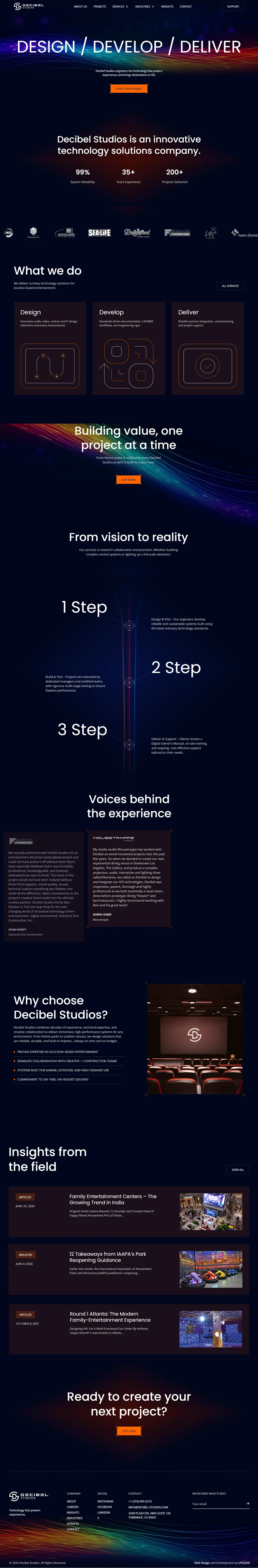 We’re excited to highlight the expertise and capabilities showcased on the new Decibel Studios website! This clean, professional redesign reflects the company’s dedication to delivering immersive audiovisual and show-control solutions, while helping visitors easily explore their portfolio, understand services, and connect with their team for custom projects.