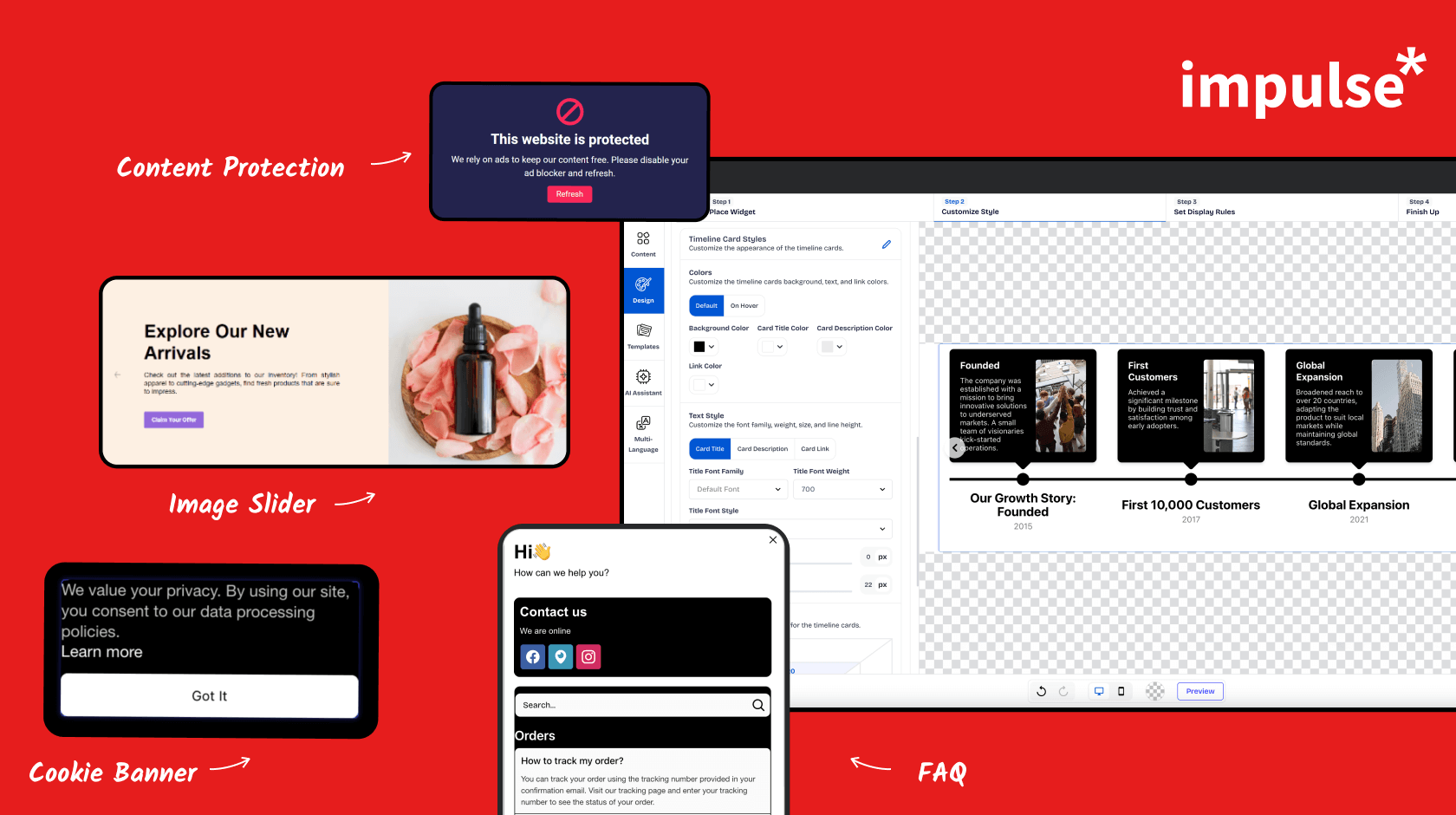 These are just a few examples — Impulse offers 40+ versatile apps to enhance every type of website, from online stores to creative portfolios. Each app is designed to extend functionality, simplify setup, and elevate your site experience.
