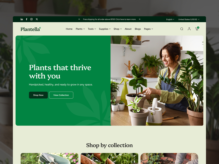 Packed with flexible features and intuitive settings ideal for growing plant shops, handmade garden décor brands, and supply-focused stores