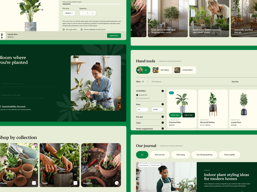 Boost sales with quick-buy buttons, sticky add-to-cart, and smooth navigation that helps customers shop plants, décor, and garden supplies