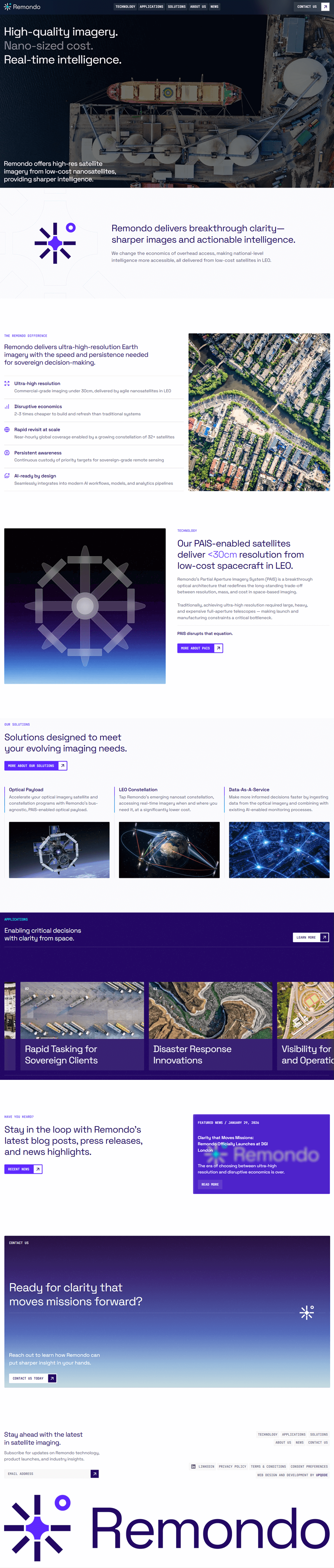Remondo is an emerging aerospace technology company redefining the economics of optical satellite imagery. Founded in 2022 and backed by early venture capital investment, Remondo is developing a proprietary Partial Aperture Imaging System (PAIS) that delivers ultra–high-resolution (<30 cm) imagery from compact, low-cost nanosatellites. By combining innovative optics with AI-driven image reconstruction, Remondo provides a distributed, resilient, and cost-efficient alternative to traditional earth observation models.