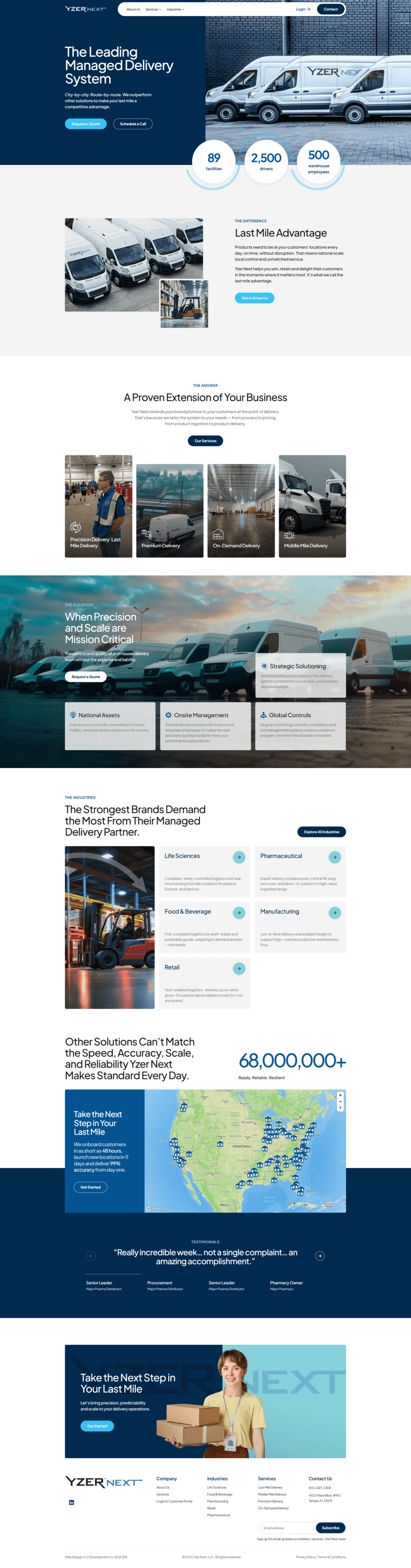 Our client, YZER NEXT, partnered with us to launch a new website that positions them as the leading managed delivery system in the U.S. The platform highlights their national scale, local control, and customer-first logistics, while integrating CRM and analytics for scalable growth. With 82 facilities, 2,500+ drivers, and a 99% on-time rate, YZER NEXT continues to redefine last-mile delivery nationwide.
